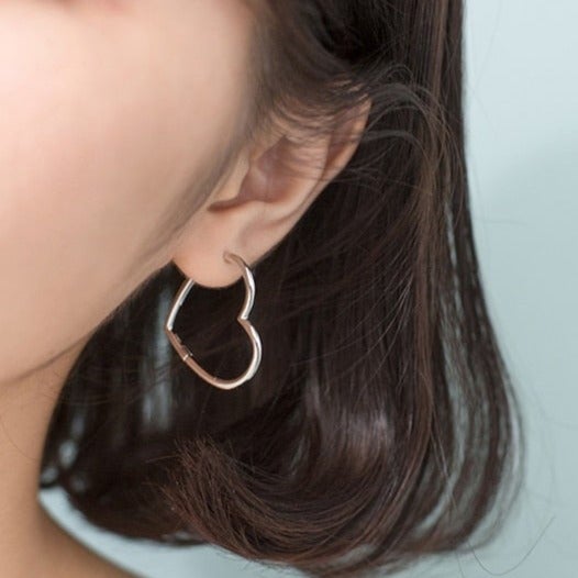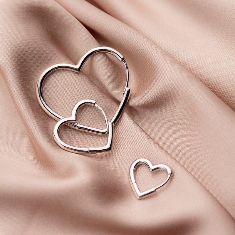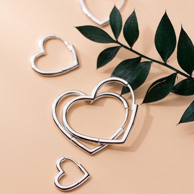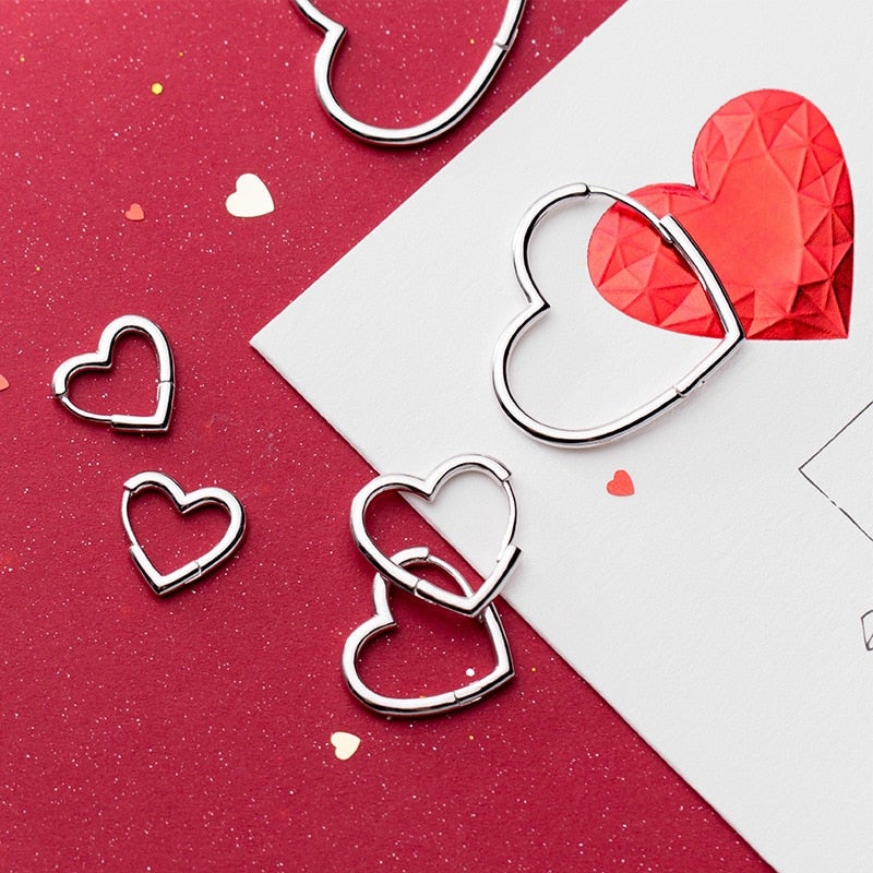 Brincos Argola Coração - Prata 925
